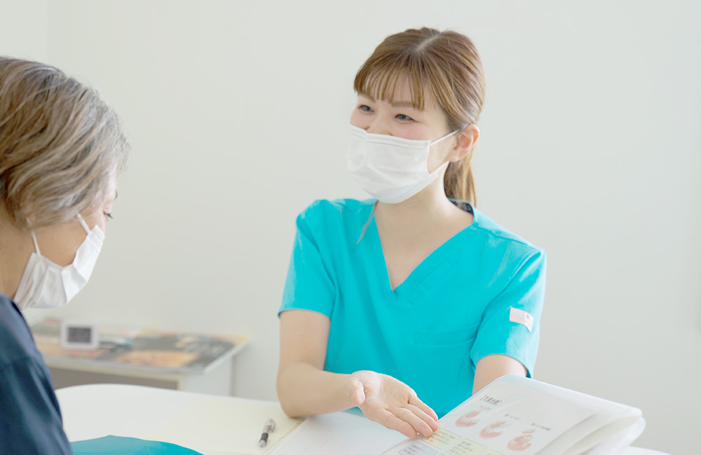 精密検査の結果をもとに、今後のお口に生じるリスクの有無、現在の症状の進行度合いなどを診断し、健康なお口の基盤をつくるための手法説明などを行います。