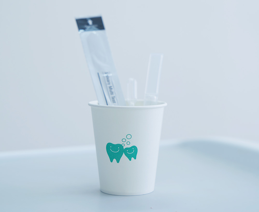 当院では、来院時に患者さん専用の歯ブラシを使い、施術前の歯磨きを行っております。