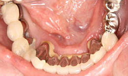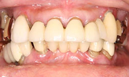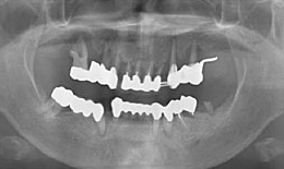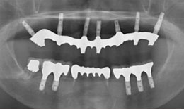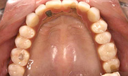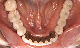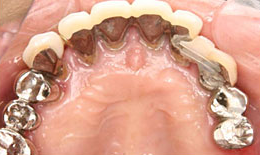 保存困難な歯を抜歯後、インプラントを7本埋め込み、ボーンアンカードブリッジを装着した