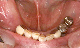 - インプラントを4本埋め込んで、セラミックスクラウンを被せた