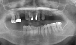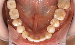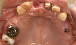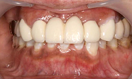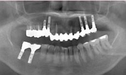 - 保存困難な歯を抜歯後、インプラントを5本埋め込んで、セラミックスクラウンを被せた